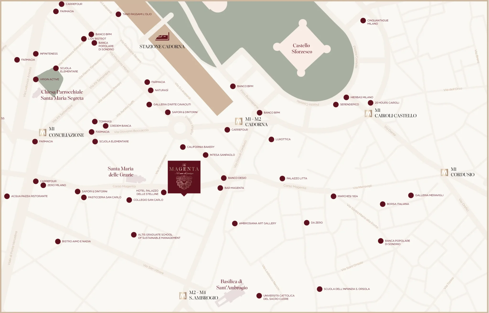 Nel cuore più esclusivo della città, a un passo dallo splendore Quattrocentesco della Basilica di Santa Maria delle Grazie, l’arte diventa casa. The Magenta è l’ultimo capolavoro di una lunga storia di bellezza e sontuosità, in Corso Magenta 55. Uno dei quartieri più sofisticati, connesso a tutto il meglio che la città ha da offrire.