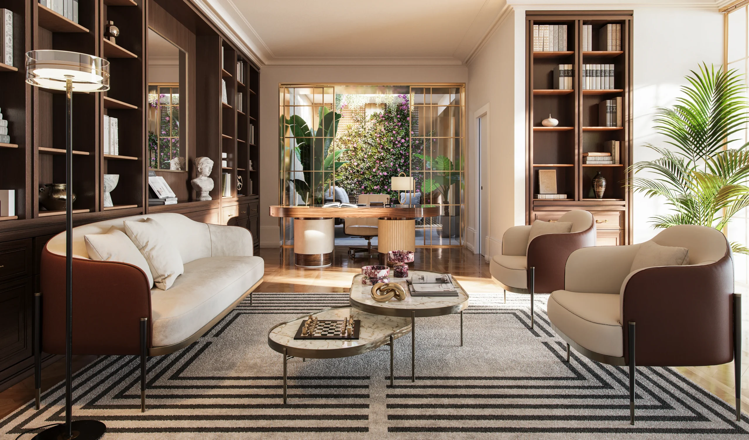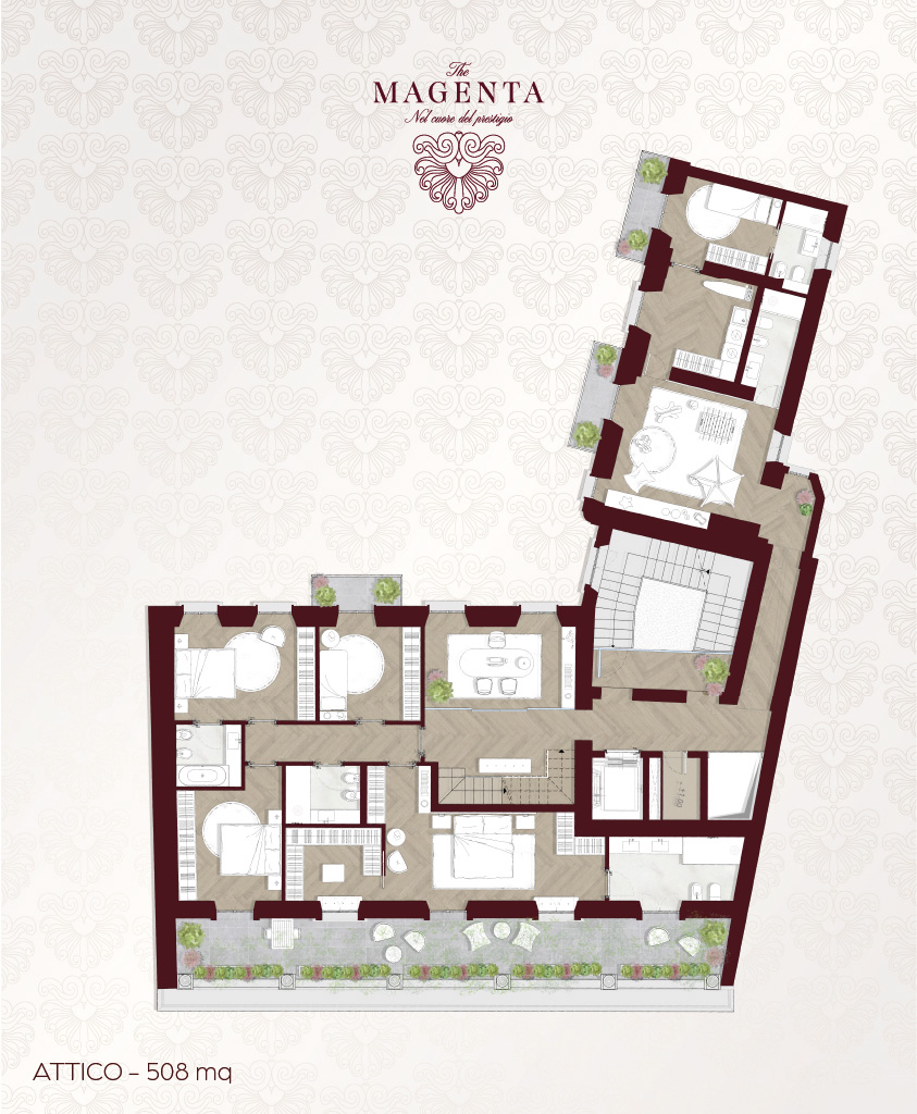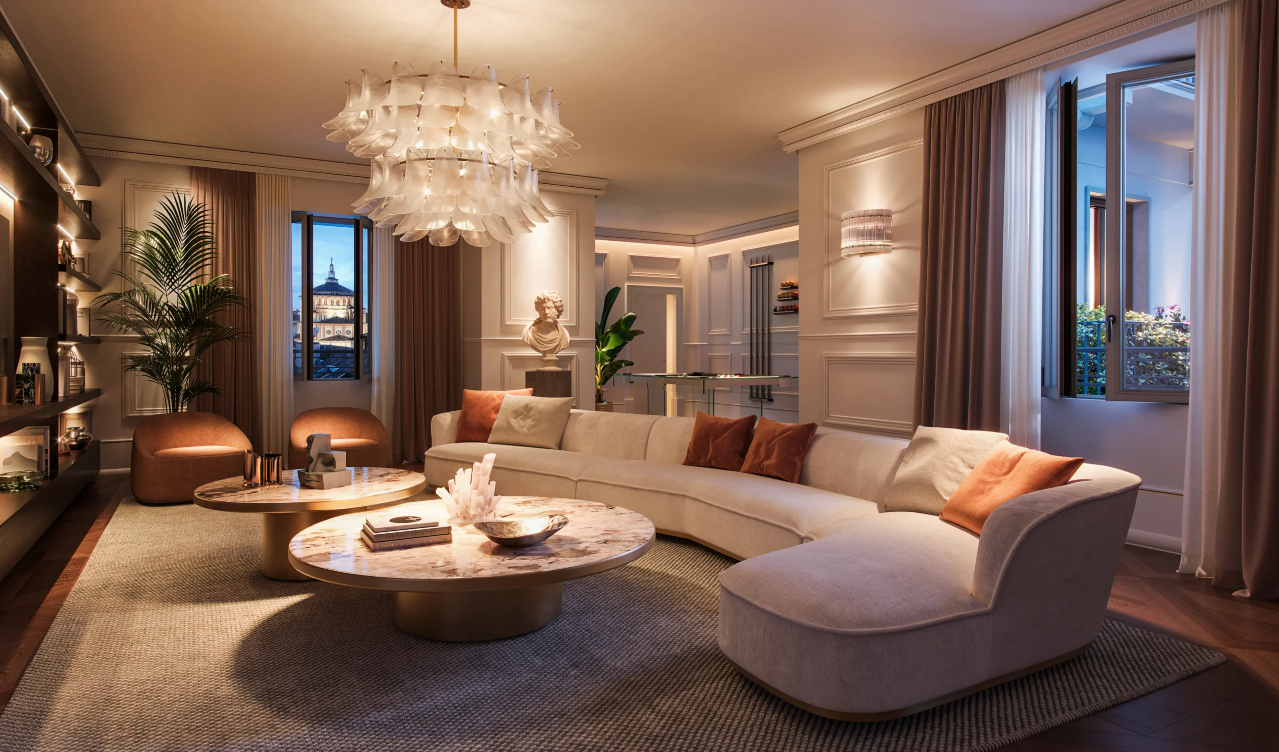Materiali finemente selezionati e finiture estremamente ricercate fanno di ogni istante trascorso a casa una vera esperienza di prestigio contemporaneo e fascino storico.