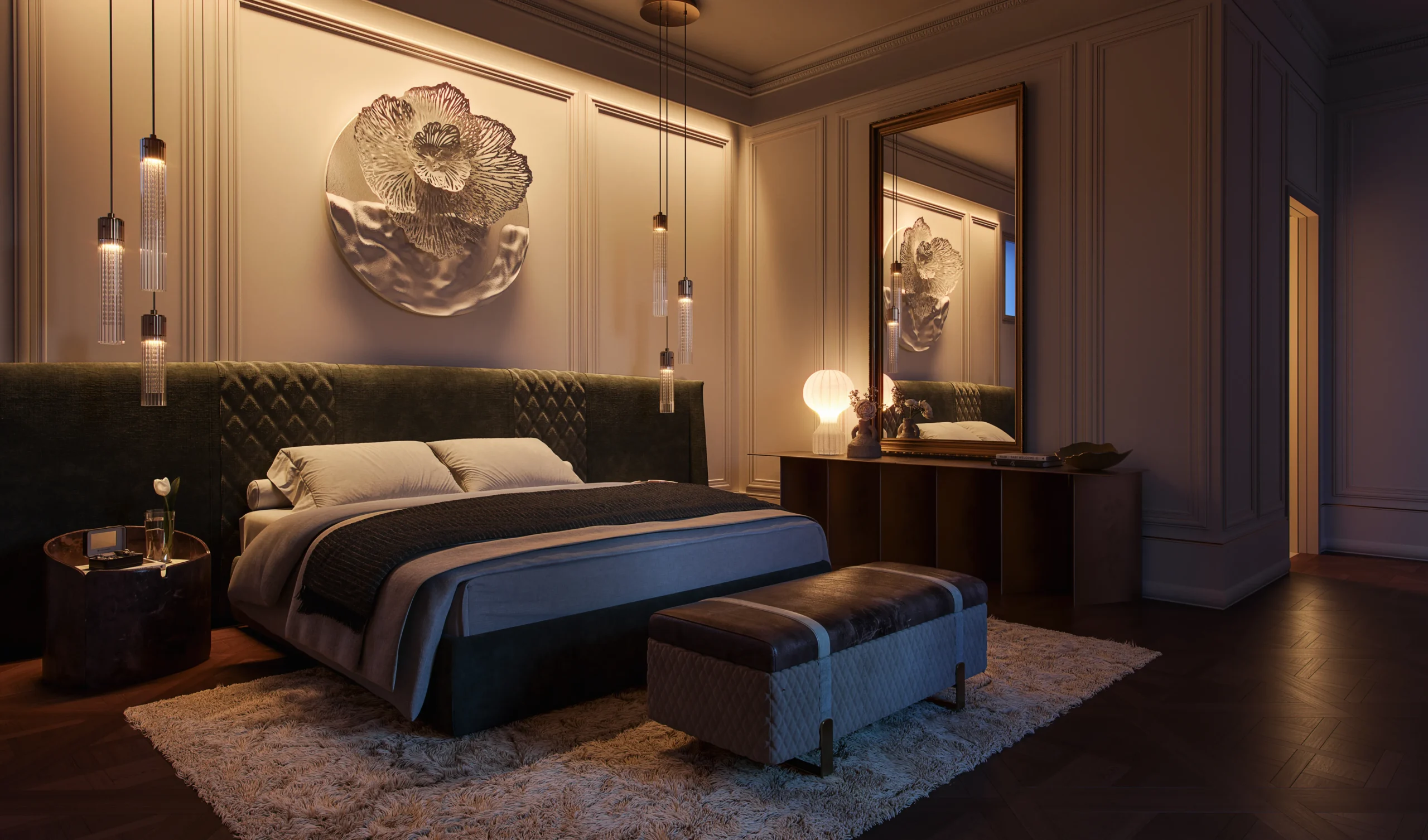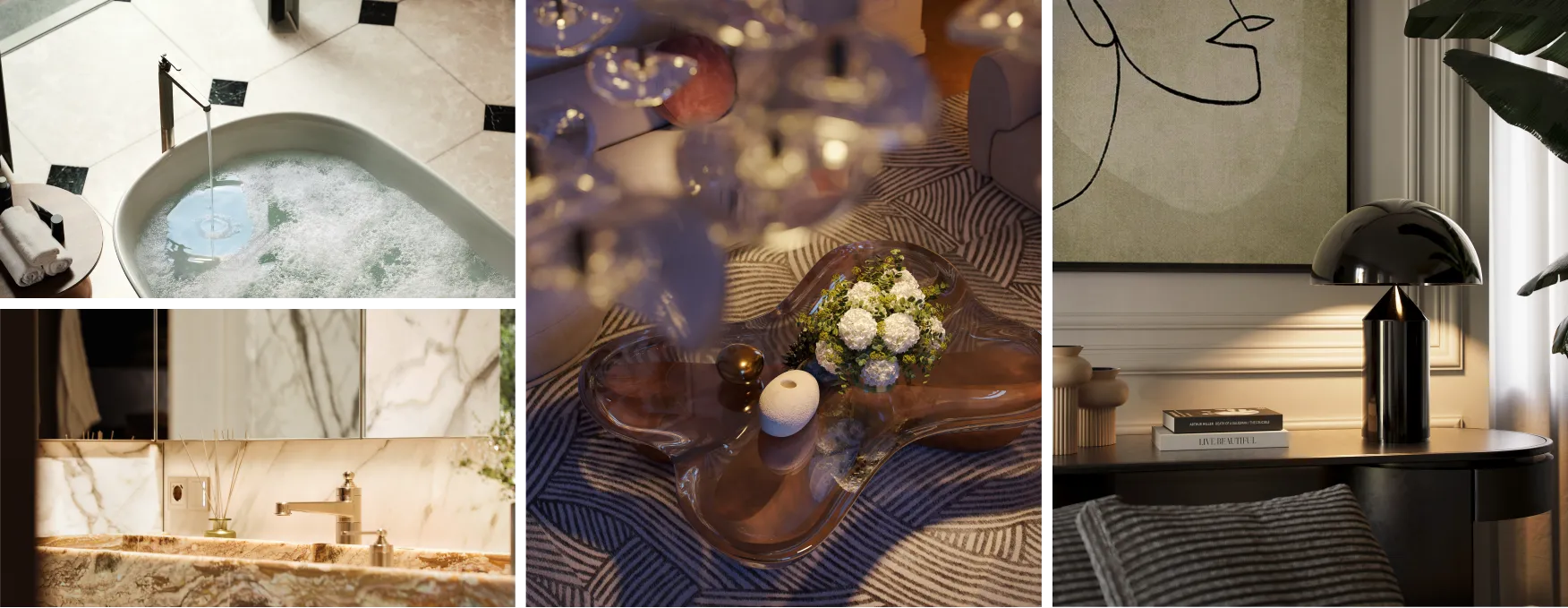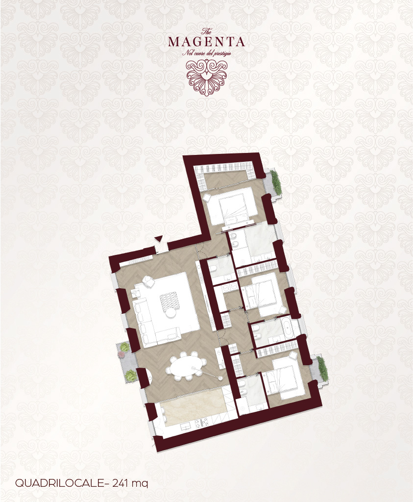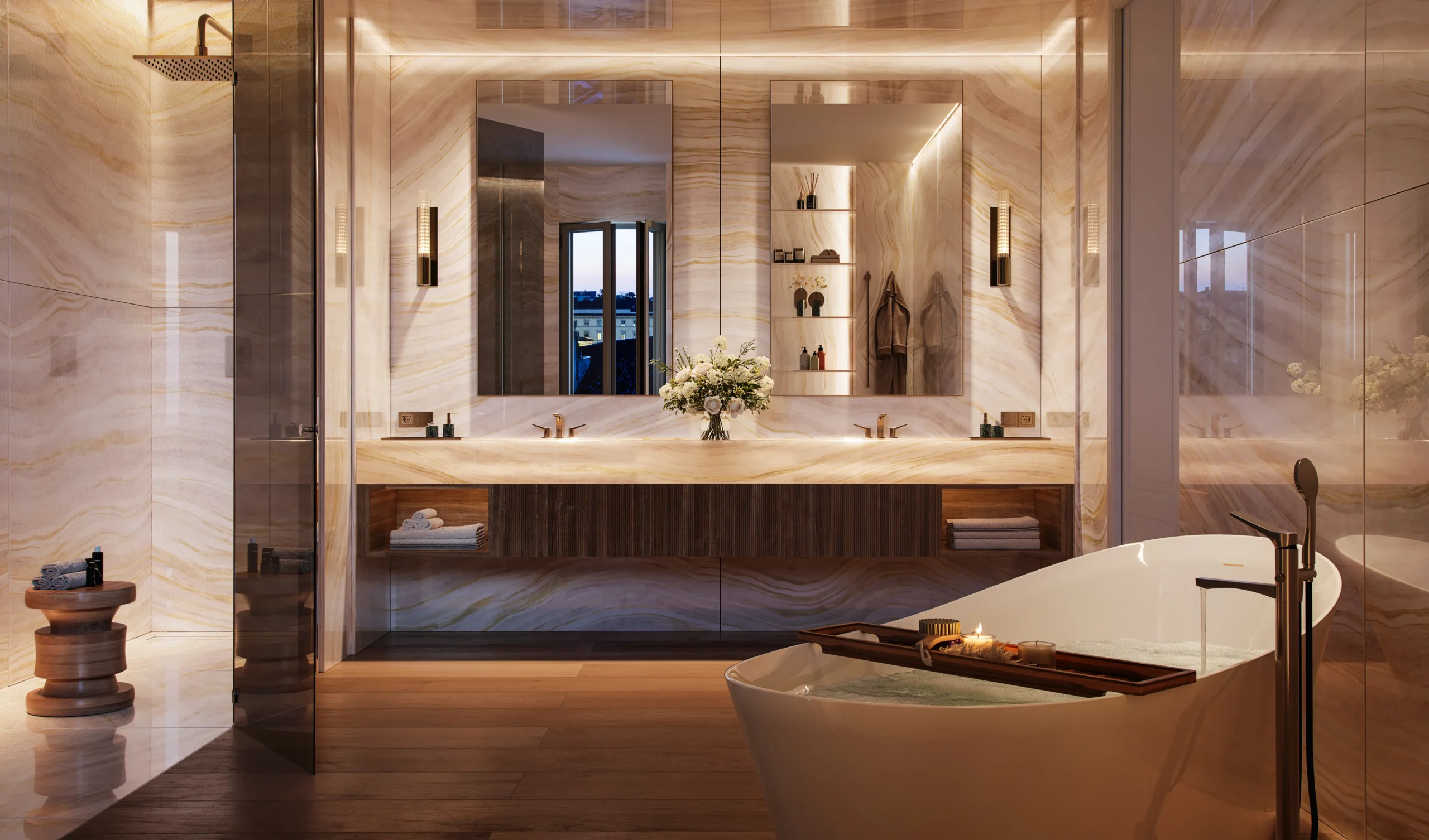 Materiali finemente selezionati e finiture estremamente ricercate fanno di ogni istante trascorso a casa una vera esperienza di prestigio contemporaneo e fascino storico.