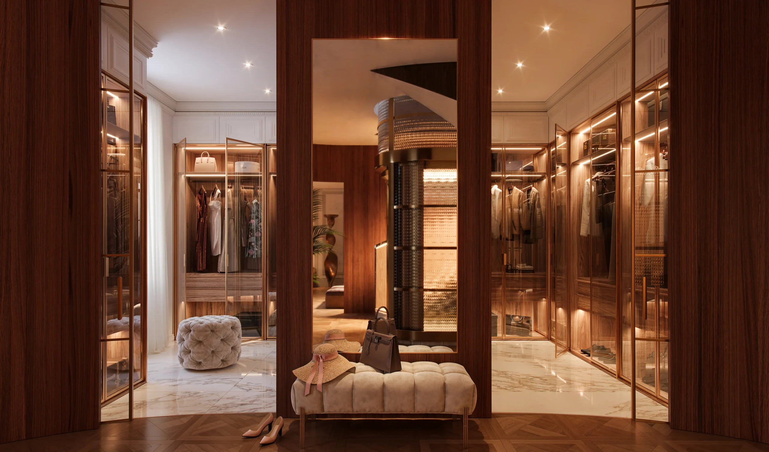 Immensi saloni per i momenti di convivialità; vaste camere matrimoniali con servizi en suite; guardaroba walk-in, bagni master che ridefiniscono l’idea stessa di benessere. Grandiose vetrate, una splendida balconata come spazio esterno e una scalinata centrale degna di una residenza di assoluto pregio.